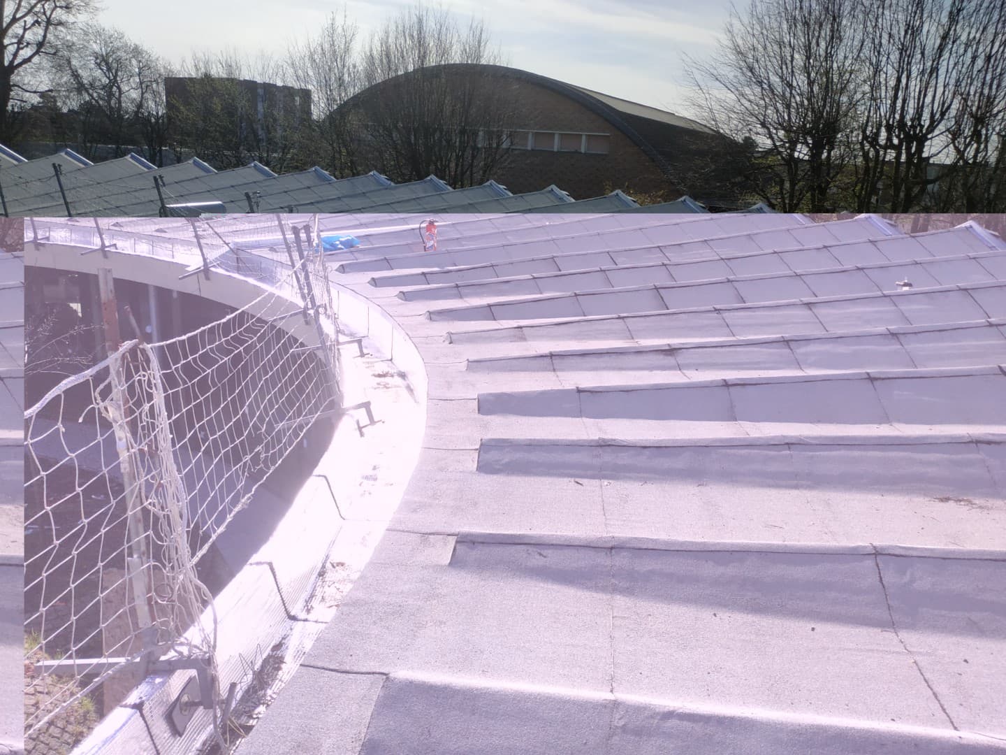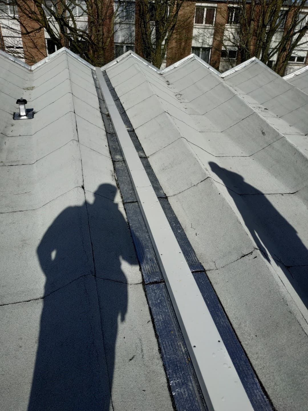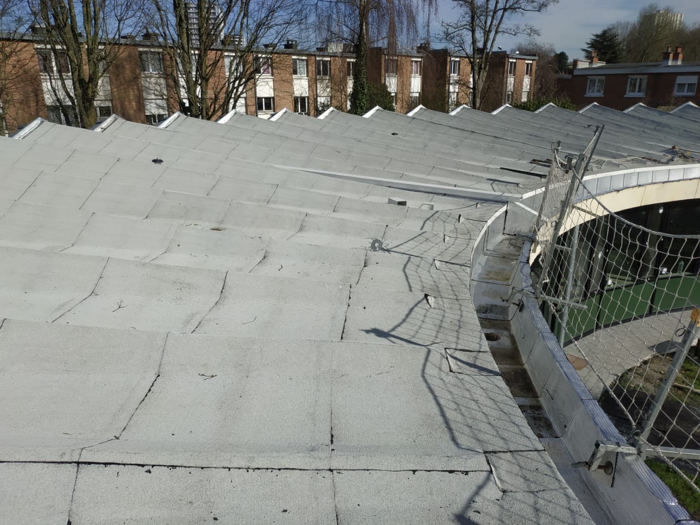 Les travaux d’étanchéité ont consisté en la mise en œuvre d’une étanchéité bi-couche Siplast, combinée à un isolant en laine de roche et polyuréthane, garantissant une protection durable contre les intempéries tout en renforçant l’efficacité thermique de la toiture.