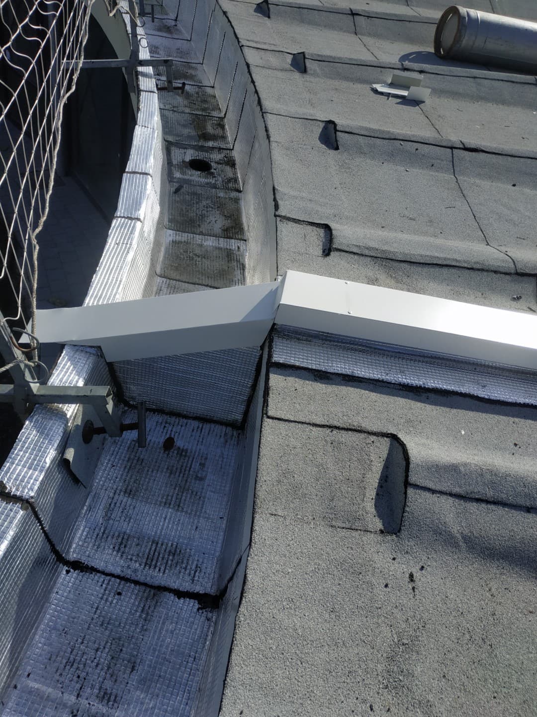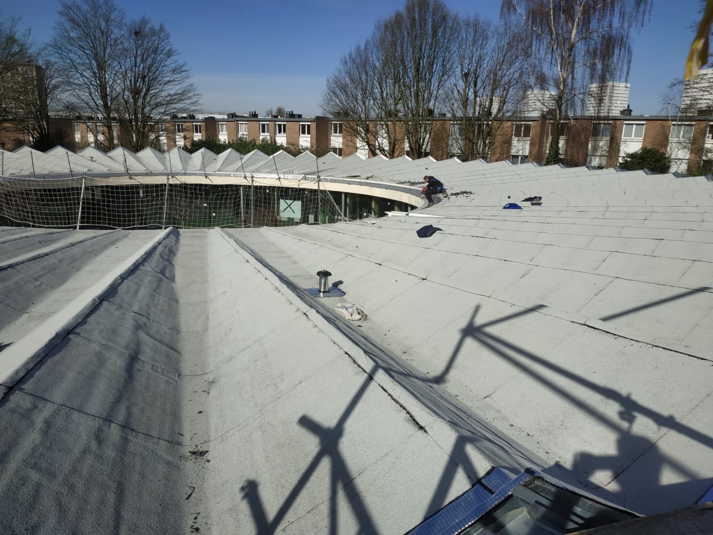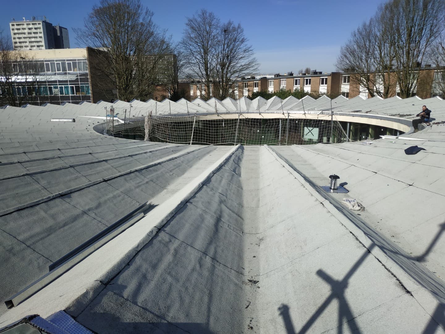 Les travaux d’étanchéité ont consisté en la mise en œuvre d’une étanchéité bi-couche Siplast, combinée à un isolant en laine de roche et polyuréthane, garantissant une protection durable contre les intempéries tout en renforçant l’efficacité thermique de la toiture.