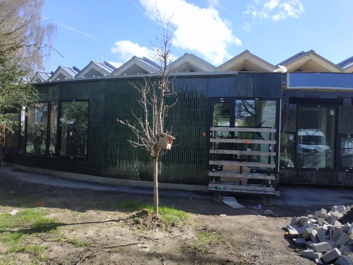 Pour les façades, nos équipes ont réalisé une ossature bois accueillant des revêtements collés Sto Ventec SCM. Ce système offre une excellente performance thermique, une grande liberté architecturale et une finition contemporaine, parfaitement adaptée à un environnement scolaire.