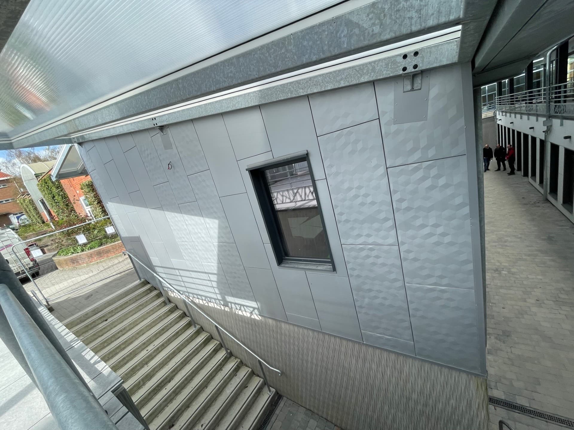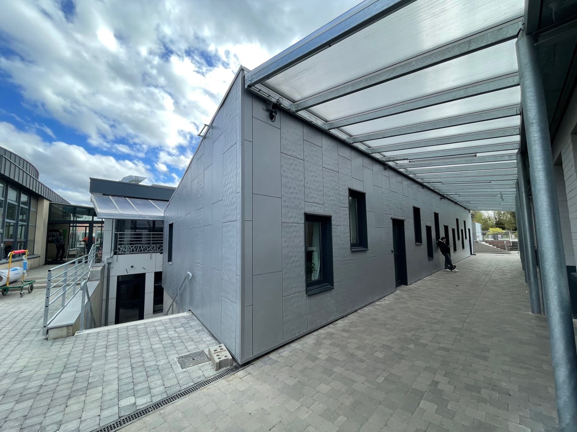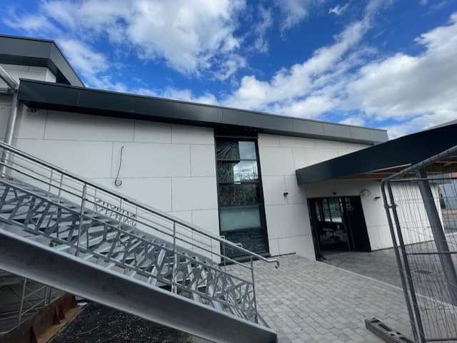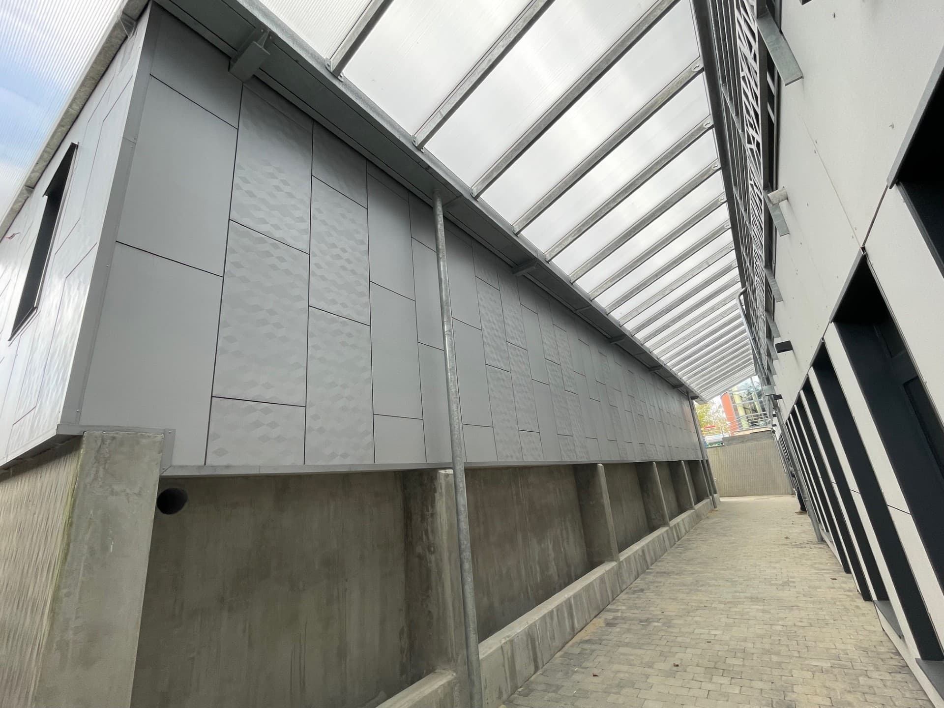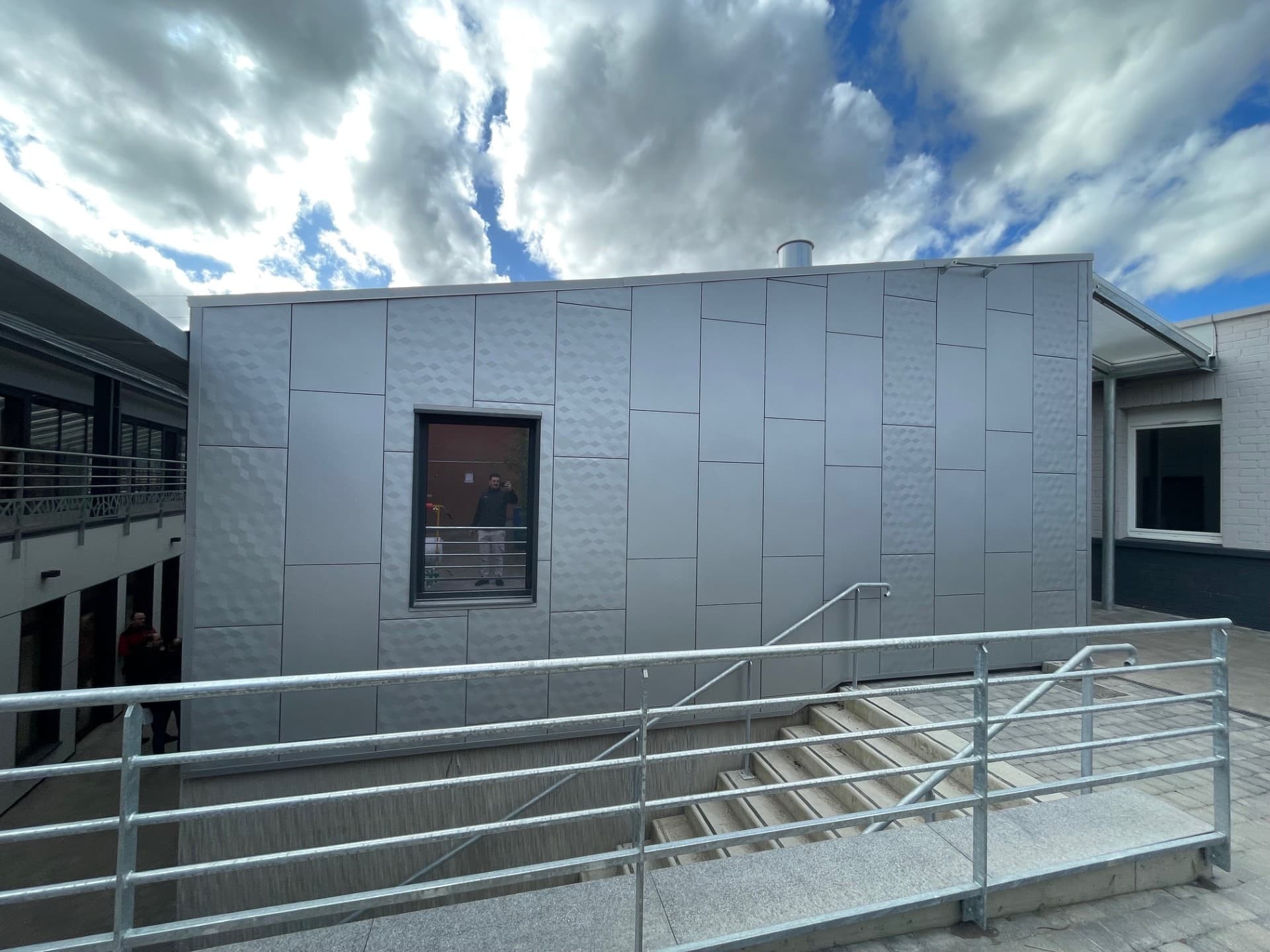 - Plaques Alucobond, utilisées pour souligner certains volumes et renforcer l’identité architecturale contemporaine du bâtiment.