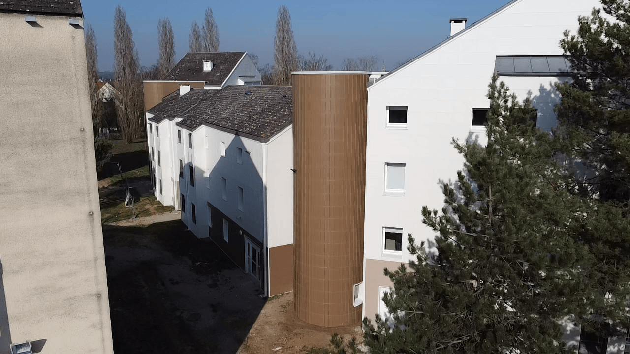 - Bardage CAREA Alpha, posé en vêture, permettant une finition élégante et durable tout en optimisant la performance énergétique de l’enveloppe.