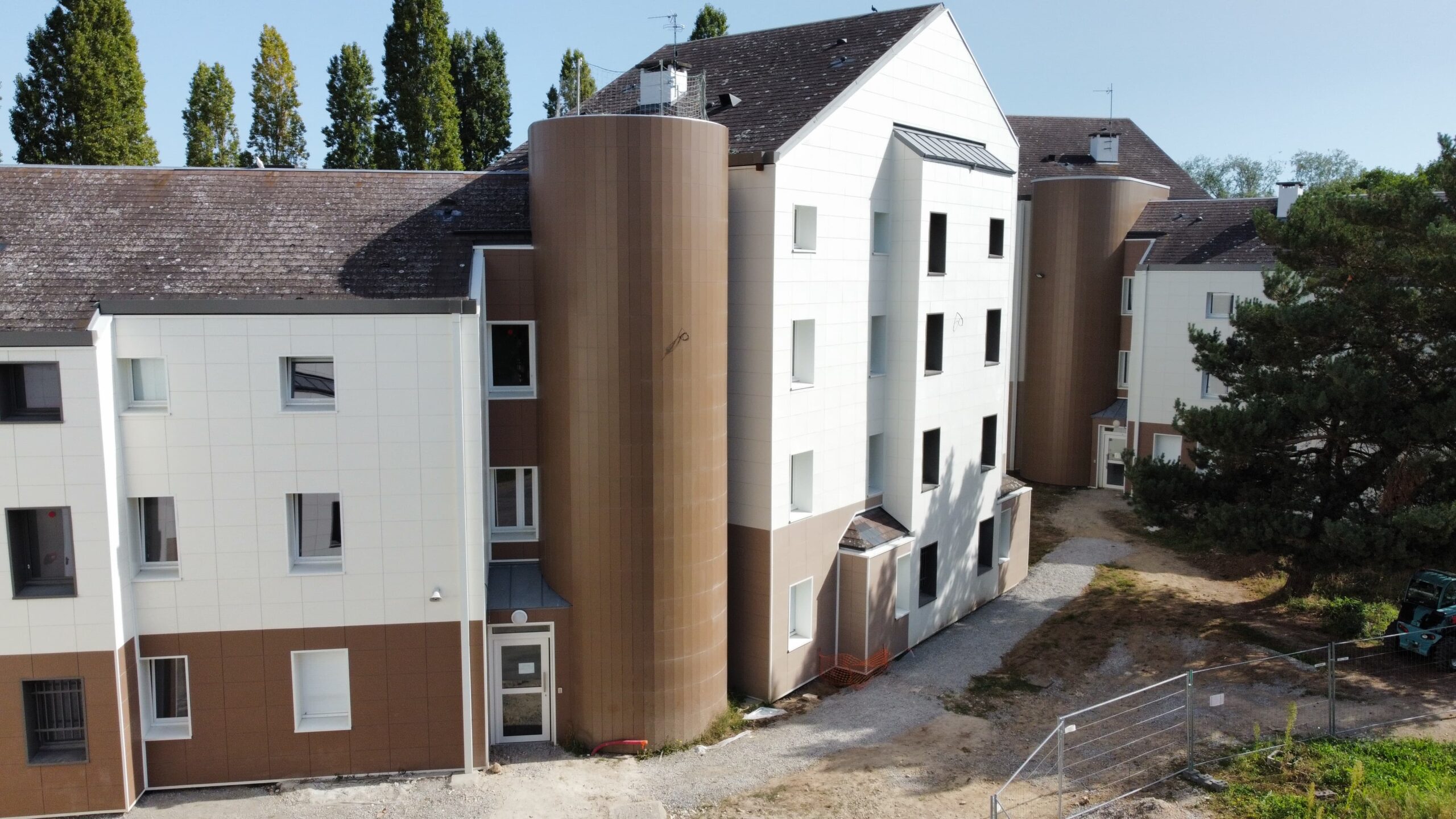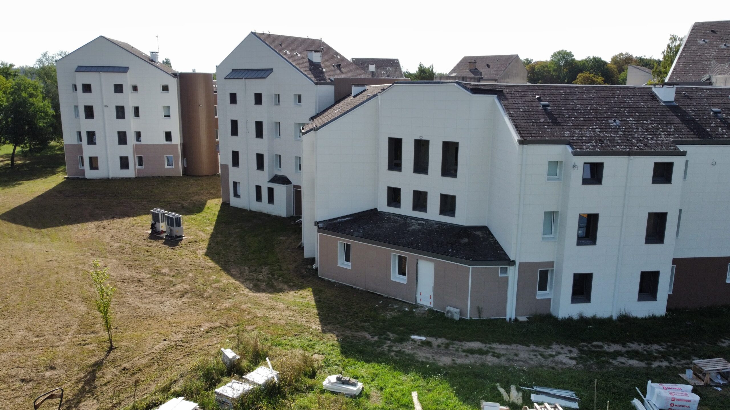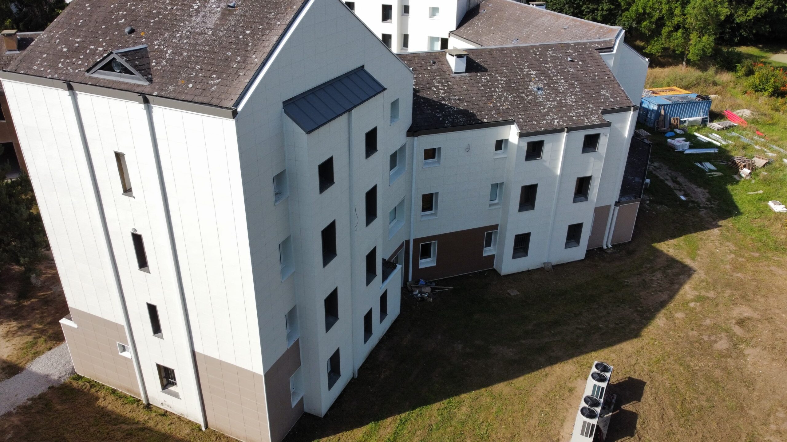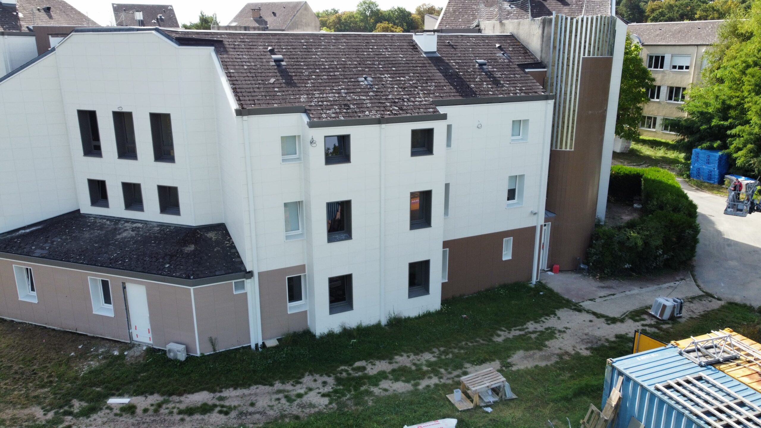 Cette intervention avait pour objectif de transformer un internat existant en un lieu d’accueil plus moderne, plus performant thermiquement et en adéquation avec les besoins actuels des élèves. La rénovation des façades a constitué un volet essentiel du projet, afin de garantir à la fois isolation, pérennité et qualité esthétique.